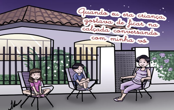 Naquela época, sabe-se, havia o delicioso e então possível hábito de familiares e amigos sentarem-se à calçada à porta de casa, para jogar conversa fora. E não éramos exceção, embora, ao que me recorde, meu avô não compartilhava muito desse ritual: preferia ficar lendo algum livro ou vendo o noticiário. Eu achava o máximo desfrutar daqueles momentos; havia uma sensação, real, de enorme cumplicidade e união entre todos nós. Como se sentar-se ali pra bater papo fortalecesse os laços que já existiam. E fortaleciam.
