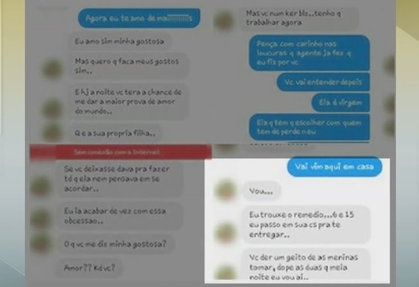Nas mensagens, o PM pede que a amante dope as meninas para que ele pudesse fazer sexo com elas. Ele chega a dizer que a permissão da amante para o ato seria uma “prova de amor”.