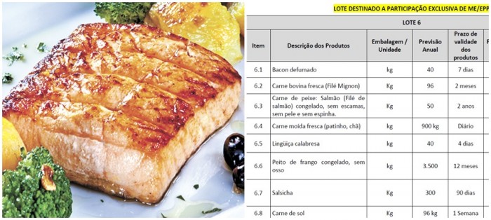 TJ-MG publica edital de compra de 50 quilos de salmão (sem escamas, sem pele e sem espinhas), 96 quilos de filé mignon e 96 quilos de carne de sol para “lanche” de juízes e desembargadores. O edital ainda prevê as marcas dos alimentos. Estimativa é de que os gastos fiquem em torno de R$ 1,7 milhão