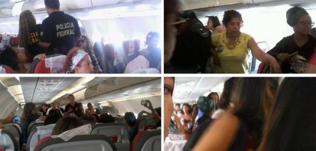 “Tudo parece que eles só vão liberar após fazer uma acareação para nos identificar, nós, a delegação de mulheres da Bahia, que puxaram palavras de ordem contra os golpistas que estão neste voo agora. Portanto, é uma arbitrariedade, não sabemos o que vai acontecer”, afirmou. Ela e a deputada Maria do Rosário (PT-RS) estão no local.
