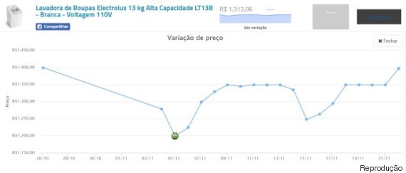 Maior preço (22 de novembro): R$ 1396,60