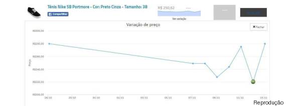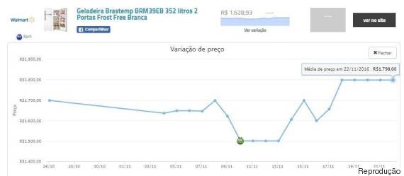 Maior preço (13 de novembro): R$ 279,90