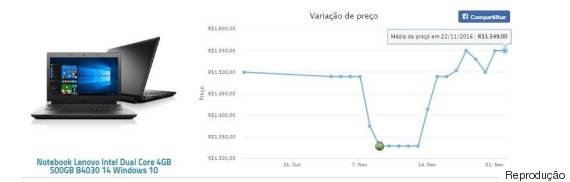 Maior preço (17 de novembro): R$ 1.099,99