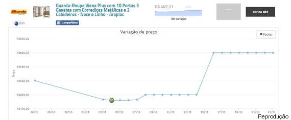 Maior preço (16 de novembro): R$ 599,90