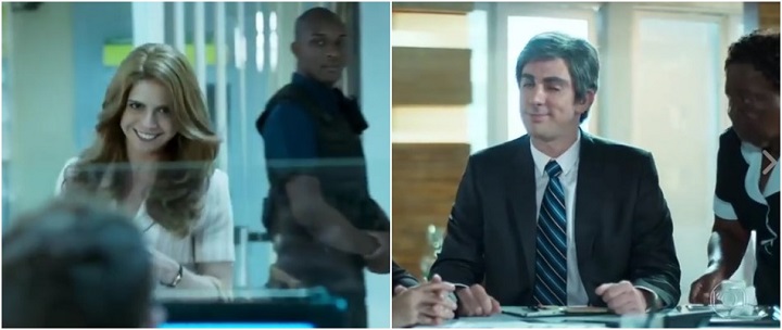 No fim, uma mulher branca diz: “E claro, nunca fui barrada na porta giratória”, enquanto uma mulher negra é parada pelo segurança numa agência bancária.
