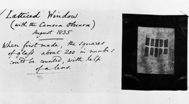 William Henry Fox Talbot preservou para sempre a imagem da janela de sua residência, a Abadia de Lacock, em Wiltshire, na Inglaterra, no mais antigo negativo fotográfico de que se tem notícia, criado em 1835.