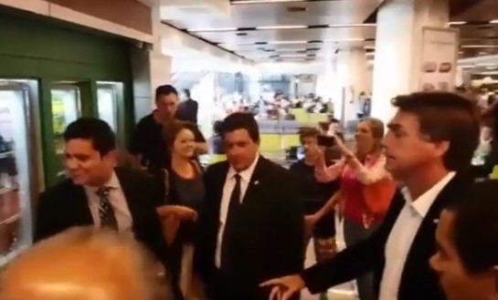 Em vídeo divulgado na internet, Bolsonaro aparece pedindo para que a cena fosse gravada. Em seguida, ele se aproxima de Moro em frente a uma lanchonete e tenta chamar sua atenção. Logo depois, quando consegue atrair o olhar do magistrado, o deputado presta continência.