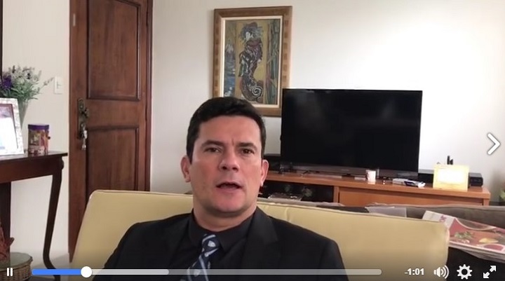 Sergio Moro gravou um vídeo [ver abaixo] no último domingo (19) para celebrar o primeiro aniversário da página Eu MORO Com Ele, criada no Facebook pela mulher do magistrado, Rosângela Moro.