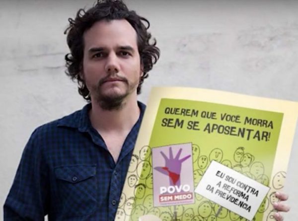 “Wagner Moura esclarece que diferentemente do que foi dito no vídeo publicado pelo governo federal em suas redes sociais no dia 14 de março, ele não foi contratado pelo MTST para vídeo contra a proposta de reforma da previdência. Wagner participou voluntariamente da mobilização, pois ao contrario do que diz o vídeo do governo, acredita que essa reforma representa mais um enorme prejuízo aos direitos dos trabalhadores brasileiros”, diz a nota.