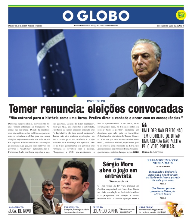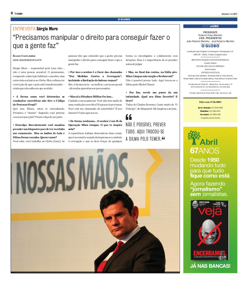 Eu fiz uns prints de algumas notícias publicadas pela “versão fake” da Globo. Achei muito interessante, por exemplo, a entrevista com o juiz Sergio Moro.