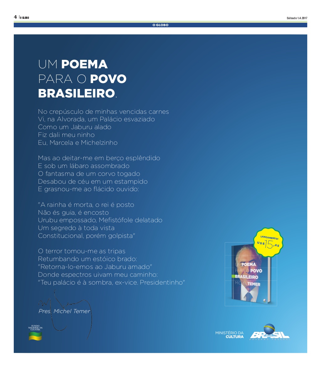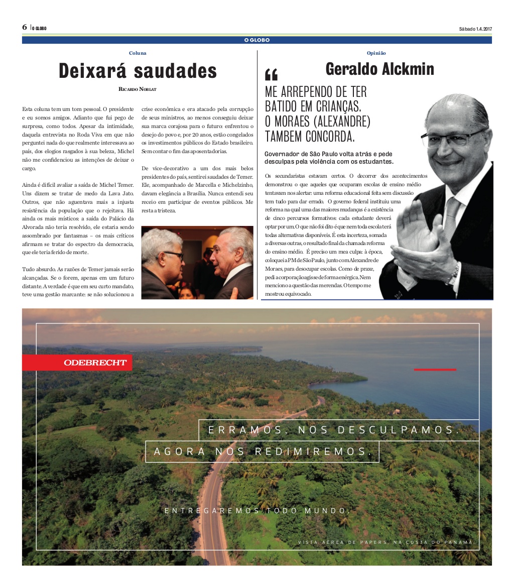 Nessa era de pós-verdades, me parece mais saudável ler o Globo fake, que ao menos é autêntico em seu desejo de reproduzir “pós-verdades” do que o original, que tenta enganar o povo brasileiro há décadas.