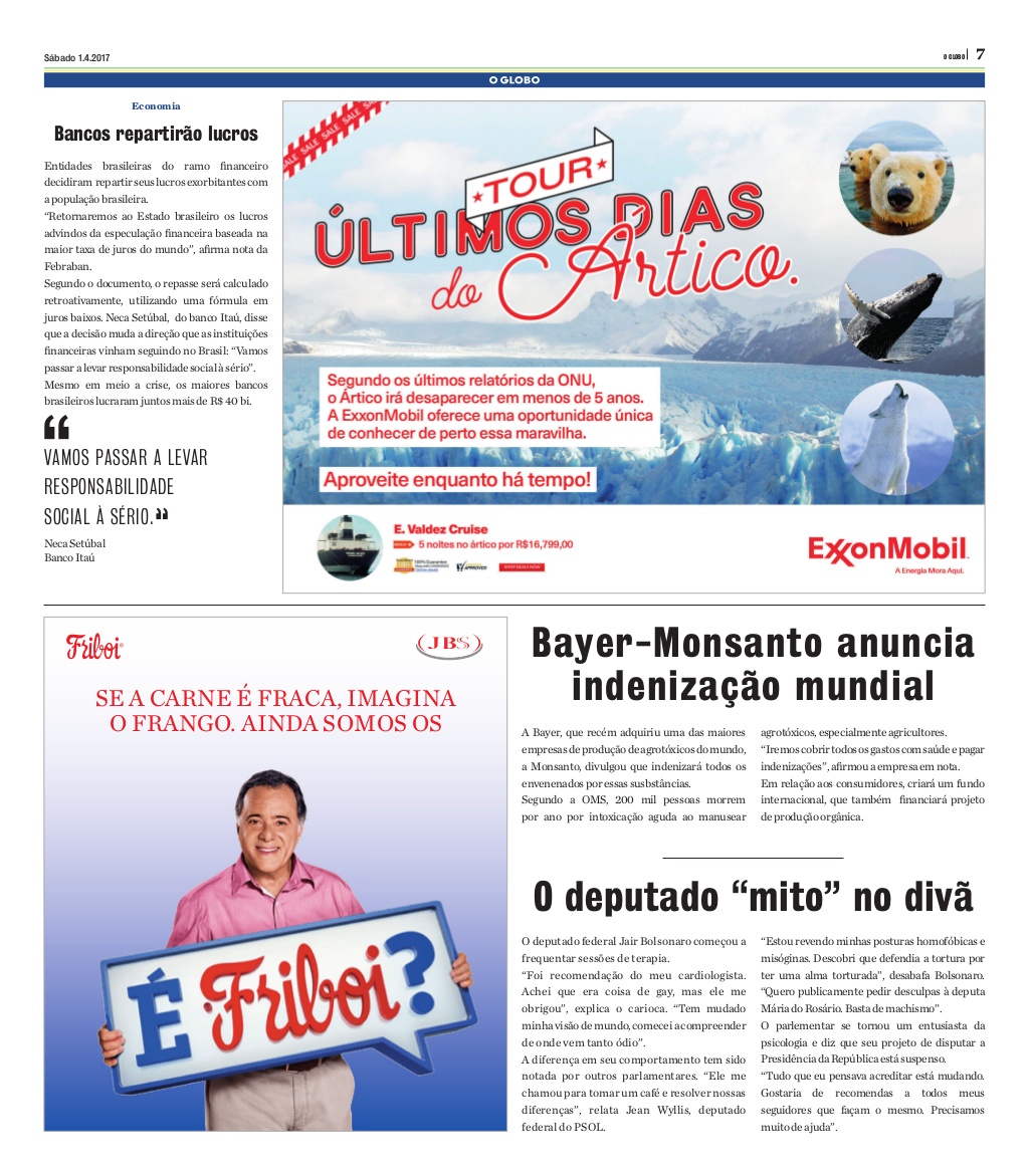 A distribuição de uma edição falsa com a logomarca do GLOBO ocorre no mesmo momento em que o jornal lança uma campanha contra a produção e a veiculação de notícias falsas, as chamadas “fake news”. O GLOBO vê no episódio uma atitude criminosa e vai tratar o assunto através de seu Departamento Jurídico.