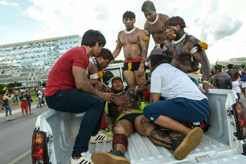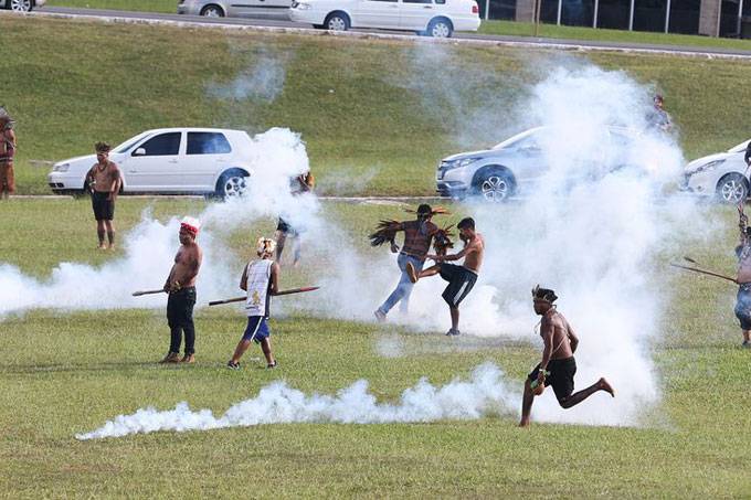 Mais vulneráveis, alguns indígenas ficaram feridos. Não houve registro oficial de ocorrência entre os policiais.
