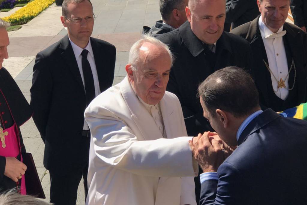 Doria cumprimentou Jorge Mario Bergoglio durante a semanal audiência geral na Praça São Pedro e um dia após ter sido revelada uma carta do Vaticano ao presidente Michel Temer na qual o Papa recusava o convite de visitar o país, alegando “agenda lotada”.