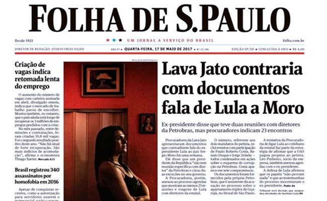 Na manchete de 17 de maio, a Folha afirmou: “Lava Jato contraria com documentos fala de Lula a Moro”. Segundo o jornal, as agendas mostrariam que Lula não teve apenas duas reuniões com a diretoria da Petrobrás em seu governo, como ele havia declarado a Moro, mas, pelo menos, 23. O Estadão destacou “reuniões de Lula” com três ex-diretores condenados na Lava Jato. O Jornal Nacional juntou as duas coisas, elevou para 28 as supostas “reuniões” e citou o Ministério Público como fonte de suas ilações, numa reportagem de três minutos.