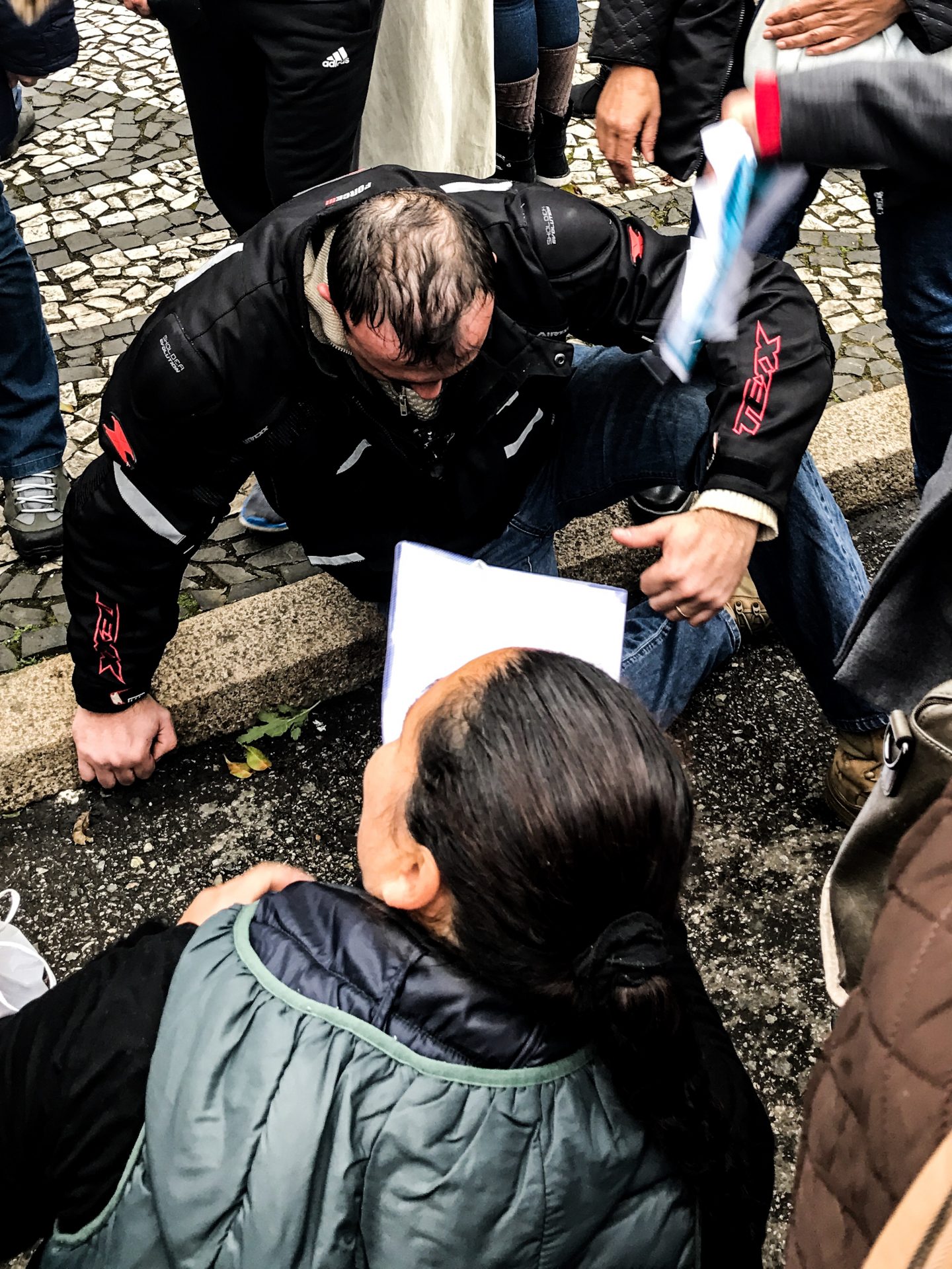 Como os trabalhadores não saíram das escadarias do prédio as agressões se intensificaram, inclusive atacando com cassetetes trabalhadores que estavam de costas.