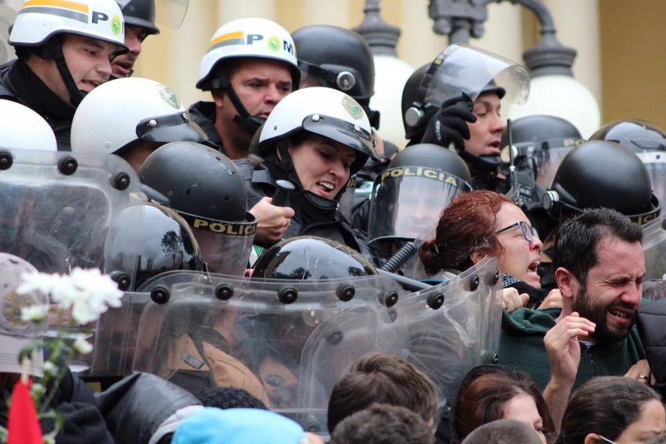 Servidores municipais de Curitiba, em greve desde a semana passada contra um “pacotaço” do prefeito Rafael Greca (PMN) que retira direitos, foram agredidos pela Polícia Militar na manhã desta terça-feira (20).