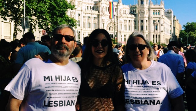 Apesar de não aparecer na imagem que se popularizou no Twitter, a mãe de sua namorada também estava com uma camiseta parecida. Os quatro foram à celebração do Orgulho em Madri no sábado passado. Quem realmente mandou a mensagem foram eles. Os pais mais orgulhosos do Orgulho de Madri. “A comunidade LGTBIQ+ teve de apropriar-se de rótulos e apelidos que terceiras pessoas utilizavam como insultos até que decidimos torná-los nossos e usá-los com orgulho, nós e nossos pais”, diz Álvarez. “Se essa mensagem te provocar algo que não seja ternura, não acredito que o problema seja nosso”.