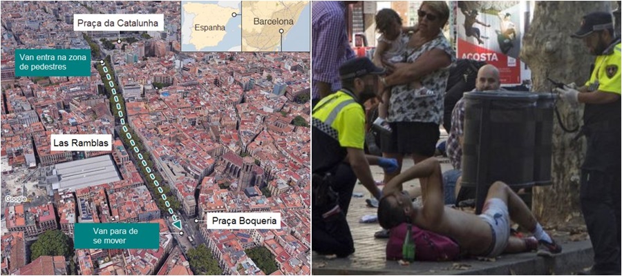 Uma van foi lançada por um motorista contra uma multidão de pedestres na avenida Las Ramblas, um dos pontos turísticos mais importantes da cidade de Barcelona, na Espanha, na tarde desta quinta-feira (17).