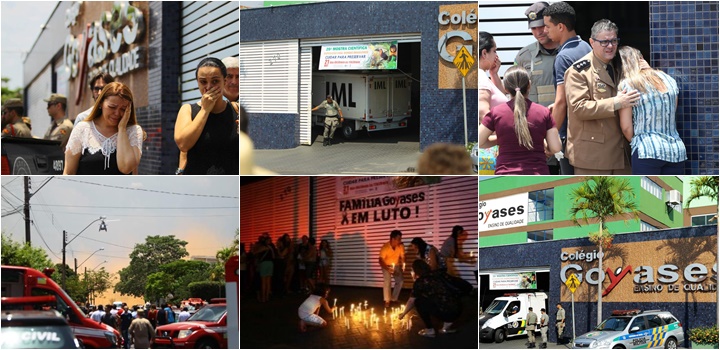 Dois estudantes morreram e outros quatro, com entre 13 e 15 anos de idade, ficaram feridos depois que um colega, aluno do 8º ano, entrou armado com uma pistola Ponto 40 no Colégio Goyases, escola particular de ensino infantil e fundamental, em Goiânia, e disparou ao menos 15 tiros, por volta do meio-dia desta sexta-feira (20).