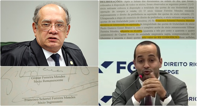 “Assim, é possível calcular que a faculdade fundada pelo ministro vale cerca de R$ 27,6 milhões, sendo R$ 12 milhões (43,44%) do filho Francisco [Schertel Mendes] e outros R$ 15,6 milhões (56,56%) em cotas de Gilmar Mendes.”
