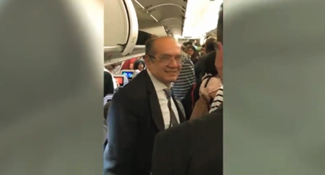 passageiros hostilizam gilmar mendes voo ministro sorri