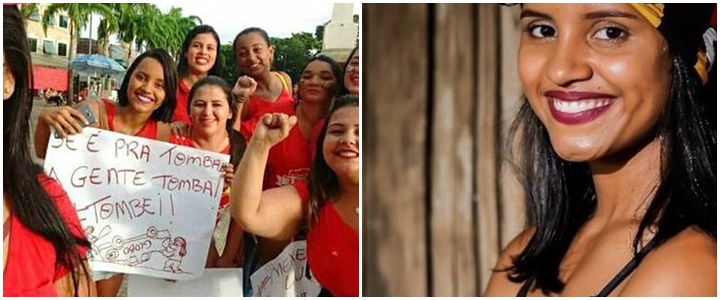 A estudante de psicologia de 22 anos aparece com um cartaz criticando a Globo, durante uma manifestação contra o presidente Michel Temer (PMDB).
