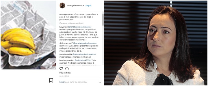 Em seu perfil no Instagram, Rosangela publicou uma foto de um cacho de bananas sobre um exemplar amassado da Folha de S. Paulo, que revelou o recebimento do benefício pelo magistrado nesta sexta-feira. “Imprensa…. para o bem e para o mal. Separam o joio do trigo e publicam o joio”, atacou a advogada.