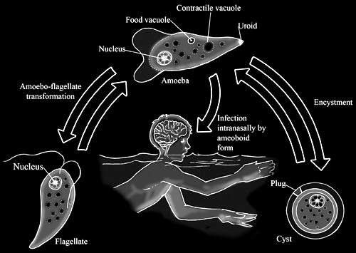 Esse parasita nada livremente e, em geral, entra no corpo pelo nariz, enquanto as pessoas nadam ou mergulham. Ele pode, então, chegar até o cérebro e causar uma infecção devastadora.