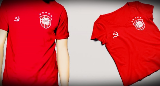 Na semana passada, uma versão alternativa da camisa da Seleção Brasileira fez sucesso nas redes sociais. A criação de uma designer de Uberlândia trazia a camisa vermelha, com o logo da CBF e ainda o símbolo da foice e do martelo.