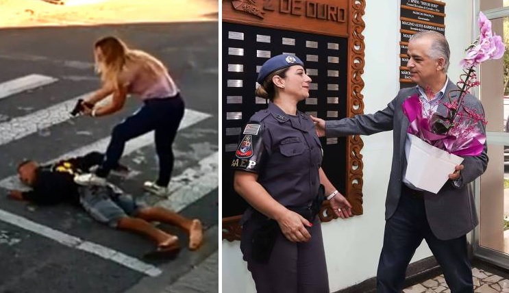 Katia Sastre, 42, ganhou status de heroína nacional e foi homenageada pelo governador de São Paulo após o vídeo em que ela aparece alvejando o bandido viralizar nas redes sociais.