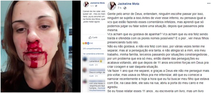 Agredida covardemente pelo ex-marido, a maquiadora Jackeline Mota publicou nas redes sociais uma imagem chocante da violência que sofreu.