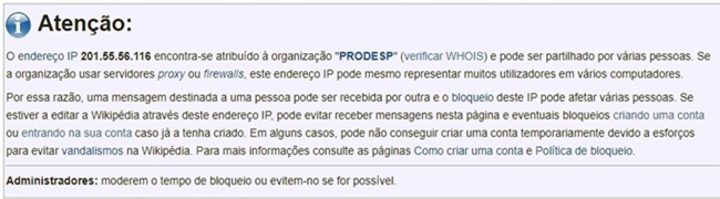 A informação da Wikipédia é que o usuário responsável pelas alterações é ligado à Prodesp (Companhia de Processamento de Dados do Estado de São Paulo).