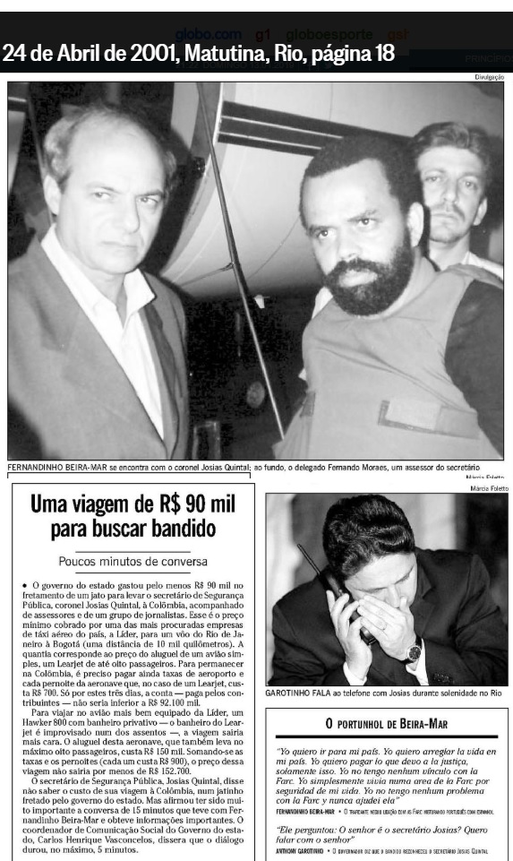 Na ânsia de apresentar o então mais procurado criminoso do país como trunfo político, Garotinho determinou a ida de seu secretário de segurança – devidamente acompanhado de equipes de jornalistas – em um voo fretado que saiu do Rio de Janeiro na madrugada do domingo. Foi uma decisão dele e do seu então secretário que, dois dias depois, retornou no avião da Líder Táxi Aéreo com os mesmos passageiros com que levantou voo. O máximo que conseguiu foi uma conversa de 15 minutos com o traficante.