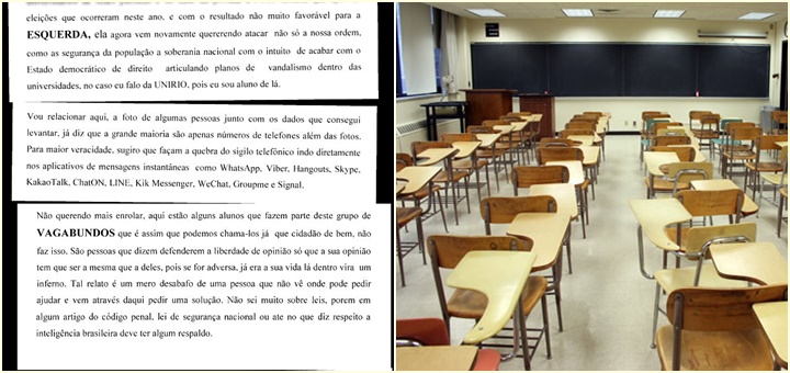 Sem apresentar provas, aluno da UniRio elabora dossiê contendo informações pessoais de outros 16 estudantes – que ele chama de "vagabundos" – da mesma universidade acusando-os de "subversão". MPF pede explicações