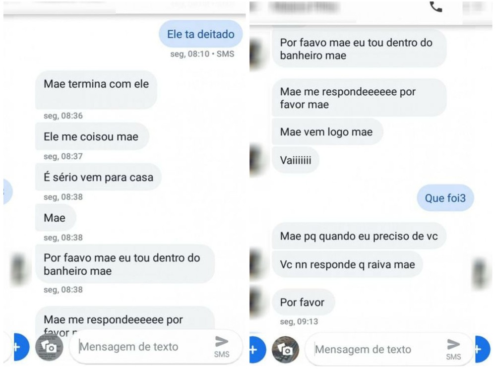 Mensagens mostram desespero de menina de 13 abusada sexualmente pelo padrasto: "Vem logo, mãe. Estou dentro do banheiro"