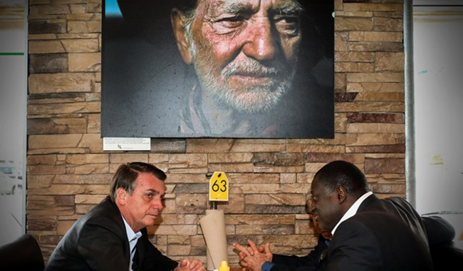 Posto isto, inadvertidamente ou não, o fotógrafo presidencial clicou o presidente sentado em um bar conversando com o amigo Hélio “Bolsonaro” Negão (PSL/RJ) e o general Augusto Heleno, ministro do Gabinete de Segurança Institucional (GSI), escondido na foto. Sobre os dois aparece, em um retrato na parede que ocupa praticamente metade da imagem, o cantor, compositor e ativista Willie Nelson.