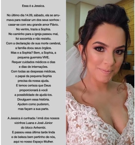“A Jéssica foi guerreira, deu a vida dela pela nossa filha. Ela é o ser mais iluminado que já conheci. Sei que essa demora foi terrível para a família, mas ela ajudou muitas pessoas, era um desejo dela doar os órgãos”, disse Flávio.
