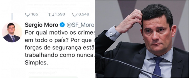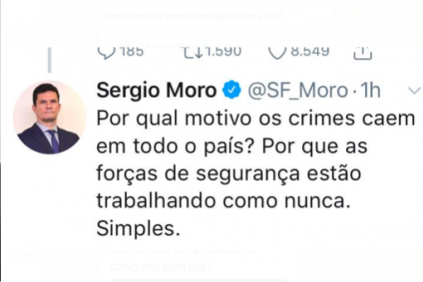 Moro voltou a assassinar a língua portuguesa em um tuíte sobre estatísticas que apontam suposta redução da criminalidade. Escreveu Moro: