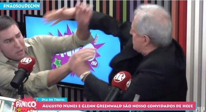 O jornalista Augusto Nunes agrediu nesta quinta-feira (7) o também jornalista Glenn Greenwald, do The Intercept, durante o programa Pânico, da rádio Jovem Pan. O deputado federal do PSL-RJ e filho do presidente, Eduardo Bolsonaro, afirmou que Nunes não teve opção e agiu em legítima defesa de sua honra.