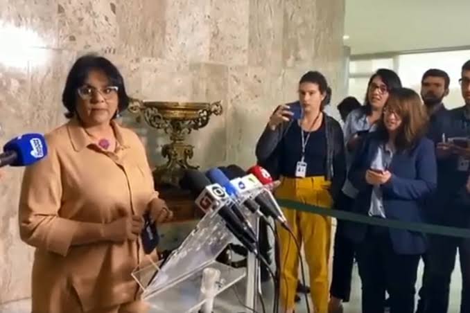 Ministra Damares Alves convoca entrevista coletiva e fica em silêncio ao ouvir as perguntas. Site referência da extrema-direita debocha da encenação e ministra rebate