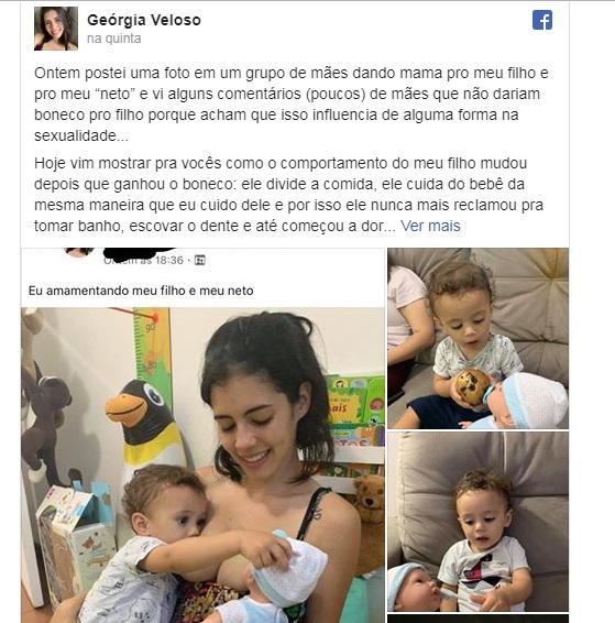 Mãe de Caio, a jovem postou em um grupo no Facebook uma imagem amamentando o filho com a boneca ao lado. Segundo Geórgia, algumas mães passaram a criticá-la, sugerindo que a boneca poderia interferir na sexualidade da criança.