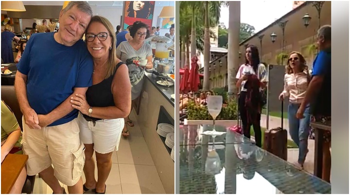 Neste domingo (1), pelo Twitter, Gleisi expôs o casal que participou das agressões. Ela postou um print do Facebook com uma foto deles e escreveu: