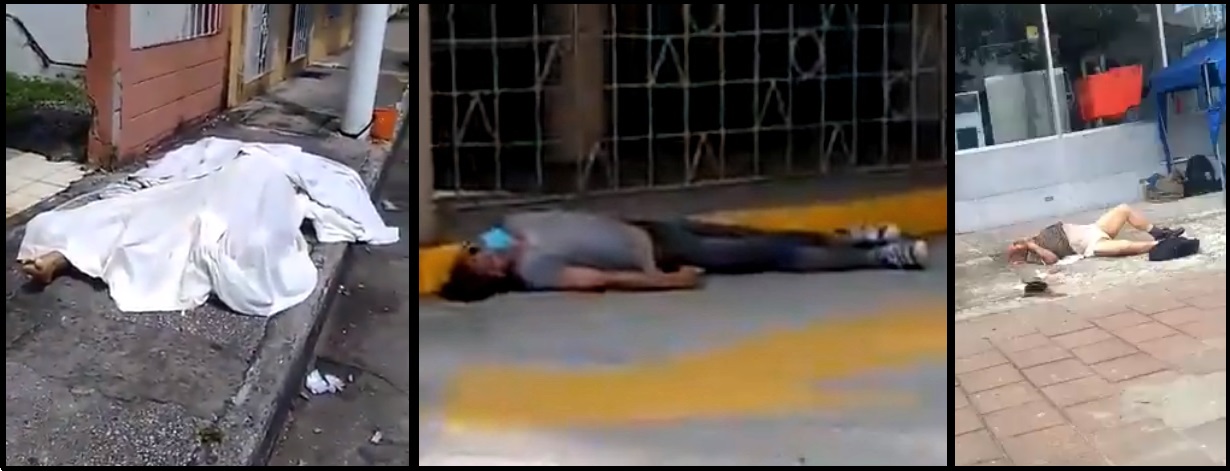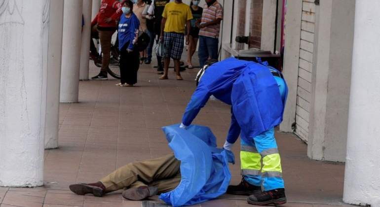 “Meu companheiro saiu para fazer compras e encontrou uma pessoa morta nas ruas Pedro Carbo e Urdaneta. Anteriormente, fomos informados de que havia outros mortos a poucos metros de distância. Aqui estamos acostumados a ver mendigos dormindo nas ruas, mas como resultado dessa crise, as pessoas morrem no centro da cidade.”