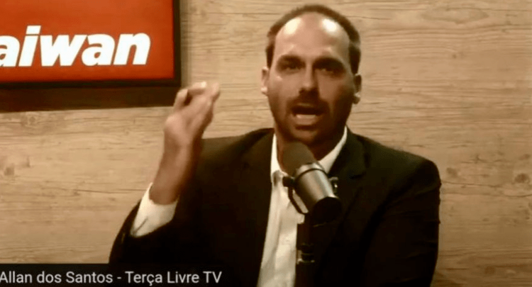 Eduardo deu as declarações em entrevista ao canal Terça Livre, do blogueiro Allan dos Santos, um dos alvos das ações da Polícia Federal ontem no inquérito das fake news. O deputado atacou o Supremo Tribunal Federal por ter avançado com as investigações, autorizado a divulgação da gravação da reunião ministerial de 22 de abril e ter pedido à Procuradoria-Geral da República manifestação sobre solicitações de depoimentos e apreensão do celular de seu pai.