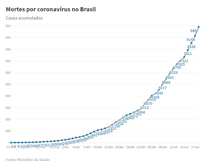 Agora, o Brasil totaliza 9.897 mortes e 145.328 casos confirmados de coronavírus. De ontem para hoje foram 10.222 novos casos.