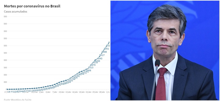 Com a atualização do governo, o país ultrapassou o dobro do número de mortes da China (4.633). O Brasil tinha alcançado a China em relação aos óbitos por Covid-19 no dia 28 de abril.