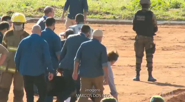 Jair Bolsonaro leva tombo na entrada do hospital de campanha em Goiás. Estrutura é apenas a primeira unidade a ser construída pelo governo federal e foi inaugurada mais de 40 dias após a conclusão, no momento em que o Brasil é devastado pela pandemia