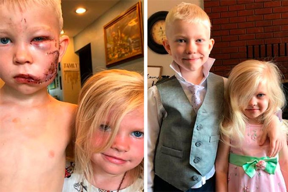 "Se alguém ia morrer, eu pensei que deveria ser eu". Menino de 6 anos salva a irmãzinha de ataque de cachorro e leva 90 pontos no rosto