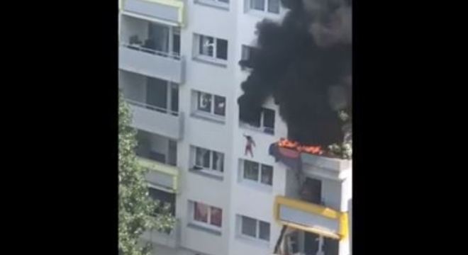 A cena é dramática: um prédio em chamas e duas crianças gritando do parapeito de um dos apartamentos enquanto o fogo e a fumaça sobem da janela ao lado, em um bairro de Grenoble, na França. Elas estão no terceiro andar e um pequeno grupo de pessoas se aglomera na calçada.